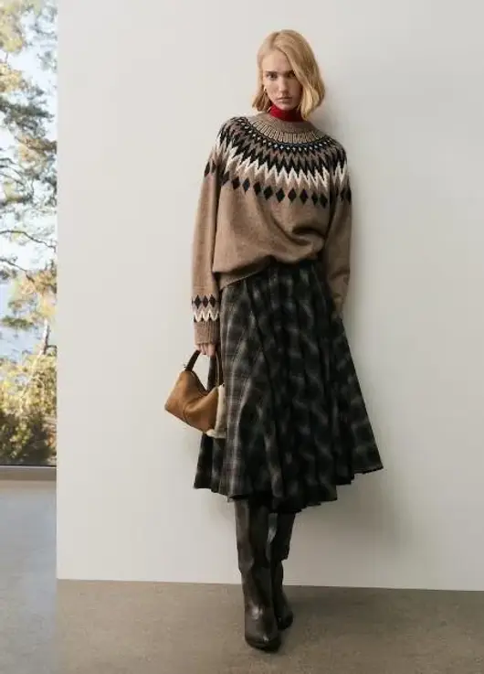 Soft, oversized, jacquard-knit sweater. Round neckline, long raglan sleeves, and ribbing at neckline, cuffs, and hem.