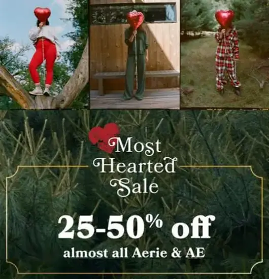 The Most-Hearted Sale! Shop in store and get 25-50% off almost all Aerie & AE.
