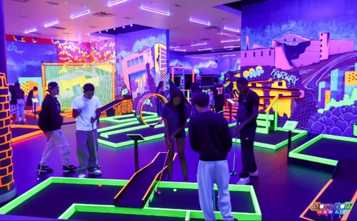 Glow Golf is a blacklight mini golf experience that glows with vibrant colors, neon obstacles, and fun for all ages.