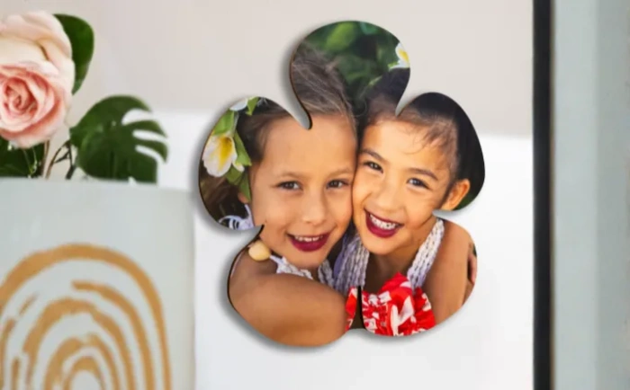 Introducing one-of-a-kind photo shapes that turn your favorite photos into custom wall art. Choose from hibiscus, monstera, circle, or heart shapes in wood or metal finishes. Ordering is easy online with free in-store pickup in just seven days.